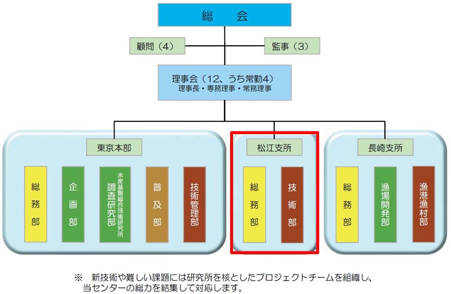 その後、平成6年に松江支所を開設し、積算・工事監督業務を行う他、最新の水産技術・行政情報を業務全般に反映した業務展開をしてまいりました。現在、松江支所では主に積算・工事監督業務により、都道府県や市町村のご支援をさせていただいております。